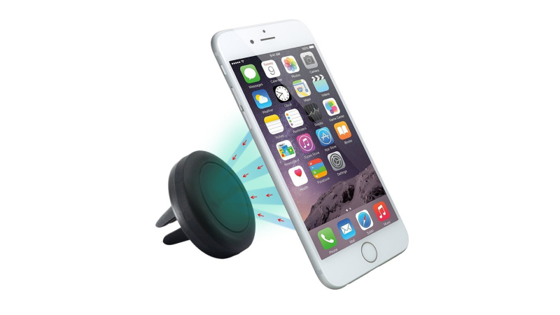 -este un suport universal , de culoare neagra cu suprafata magnetica ce se fixeaza in grila de ventilatie de la masina.