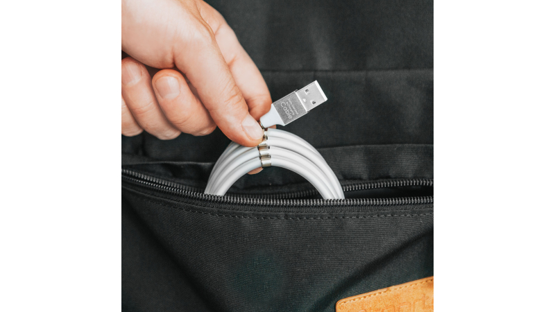 Cei 10 magneti aplasati pe lungimea cablului ajuta la depozitarea ordonata a acestuia, iar lungimea excesiva a cablului poate fi usor redusa.
