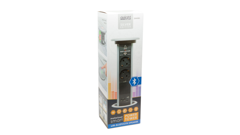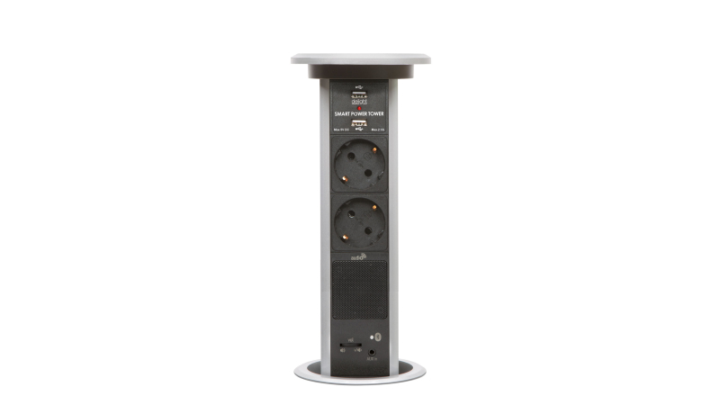 *(Prețul include TVA)Distribuitor camuflabil cu motor pt. uz de birou sau casnic. Carcasa metalica, 2 prize cu protectie pt. copii, priza dubla USB, cu difuzor si conexiune Bluetooth. Ascultati muzica în bucatarie sau birou cu acest distribuitor încorporat. Împerecheati cu telefonul mobil (Android sau IoS) sau conectati cu cablu prin jack 3,5 mm.