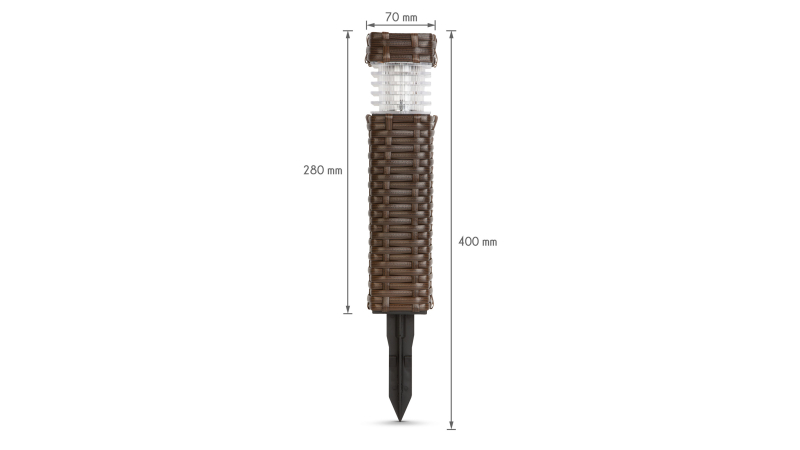 Tarusul iti permite sa o pozitionezi rapid si usor. Atunci cand se intuneca, lumina se aprinde automat si se stinge la rasaritul soarelui. In timpul zilei, celulele solare transforma energia solara in electricitate si o stocheaza in baterie.