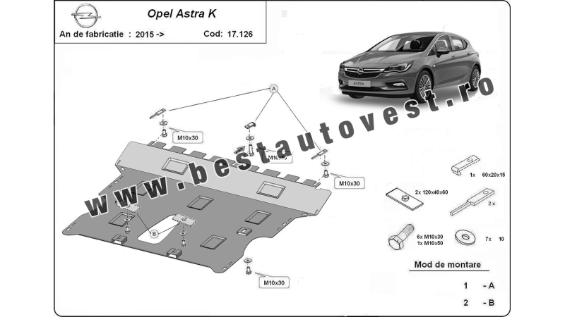 *(Prețul include TVA)Scut motor metalic Opel Astra K 2015- toate motorizarile