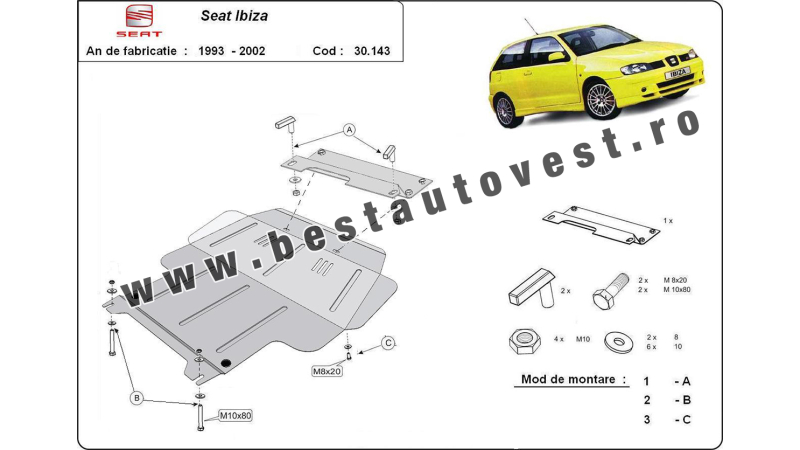 *(Prețul include TVA)Scut motor metalic Seat Ibiza 1993-2000 motorizare 1,0 2,0