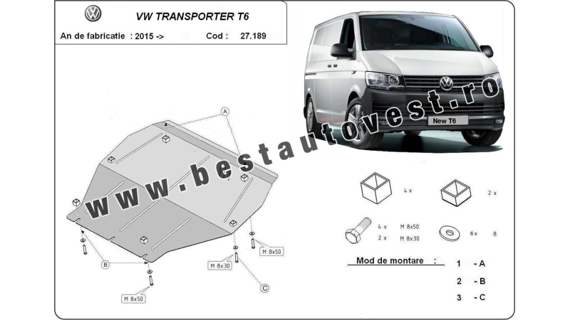 *(Prețul include TVA)Scut motor metalic Vw Transporter T-6 2015- motorizare