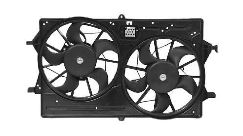 *(Prețul include TVA)GMV radiator electroventilator Ford Focus, 1998-2004, Motorizare 1,4 55kw; 1,6 74/81/85kw ; 2,0 81/96/108/127kw Benzina, tip climatizare cu AC, dimensiune 2x300mm, 6 pini, cu rezistor, plasticmm, , Aftermarket